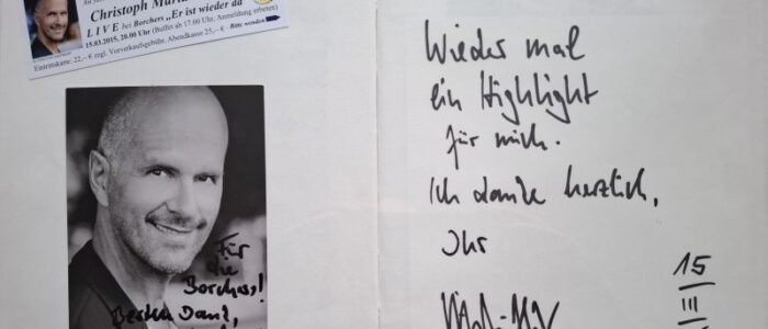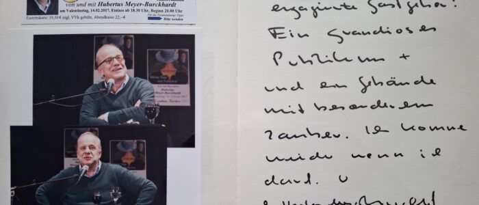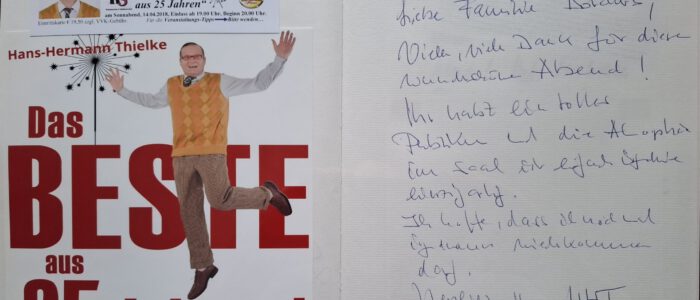 Das ist die Gelegenheit für ein herzliches Dankeschön an unsere Gäste, Künstler und Wegbegleiter: