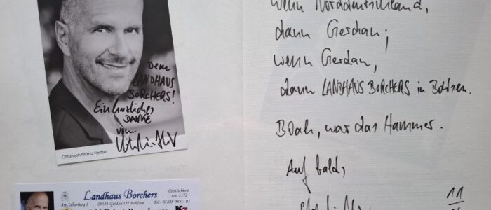 Auch wenn das Kapitel „Landhaus Borchers“ abgeschlossen ist, bleiben die Erinnerungen lebendig. In unserem Herzen, und vielleicht auch in Ihren. Einige davon finden Sie vielleicht auf dieser Homepage wieder.
